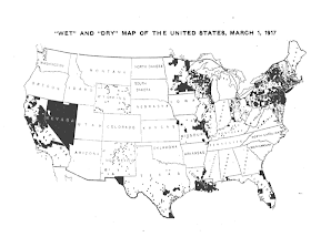 One immediately useful comparison is this map from an Anti-Saloon League book showing which parts of the country had already gone "dry" by March of 1917, before the vote on the Eighteenth Amendment: